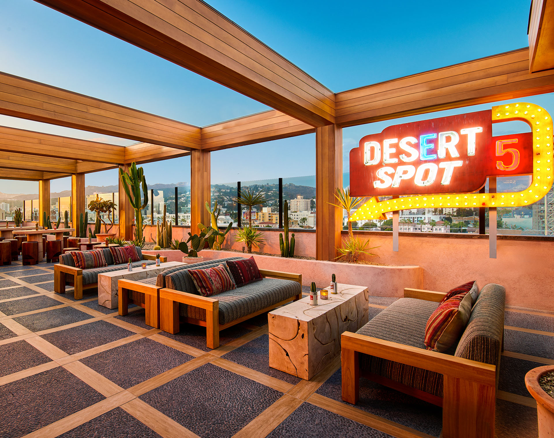 Located in the Tommie Hotel, Desert 5 Spot is the new rooftop bar that brings to life the vibe of vintage Palm Springs, inspired by Joshua Tree hideouts, throwback roadside motels, and cosmic Americana.